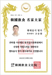 • 대한민국 한식부문 조리명인